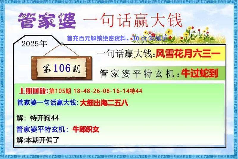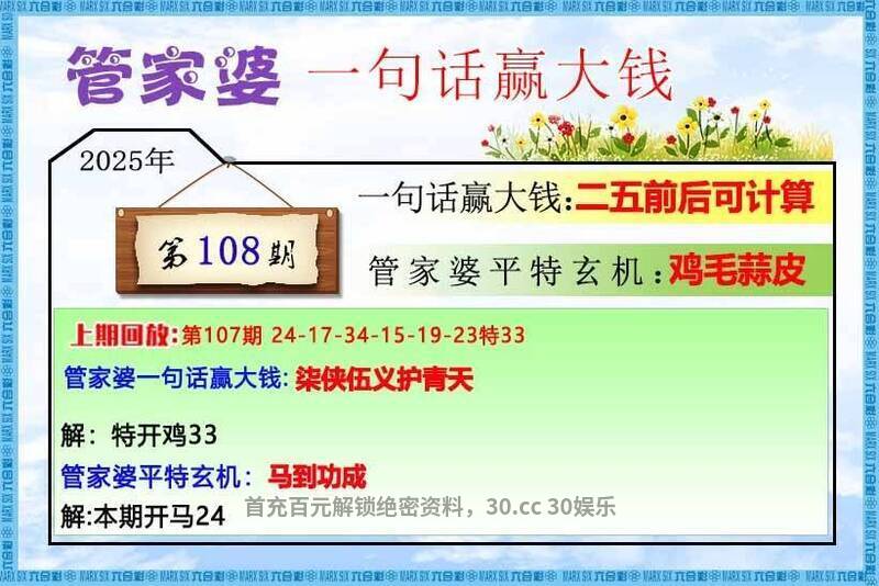 108期:管家婆一句话赢大钱:【二五前后可计算】